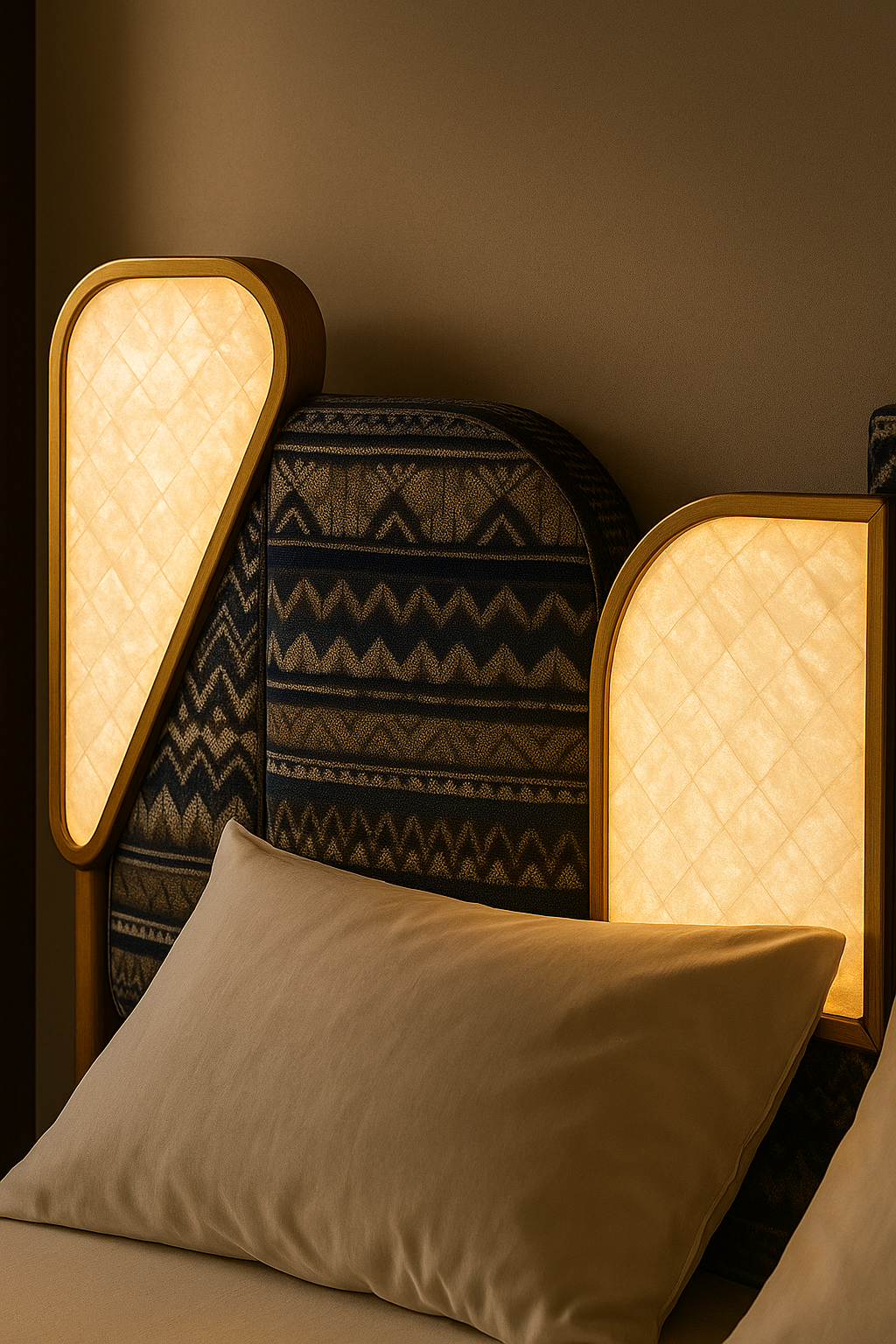A piece that evokes the senses to bring forth an experiential aesthetic with the subtle glow of lighted Mother of Pearl cabinet top